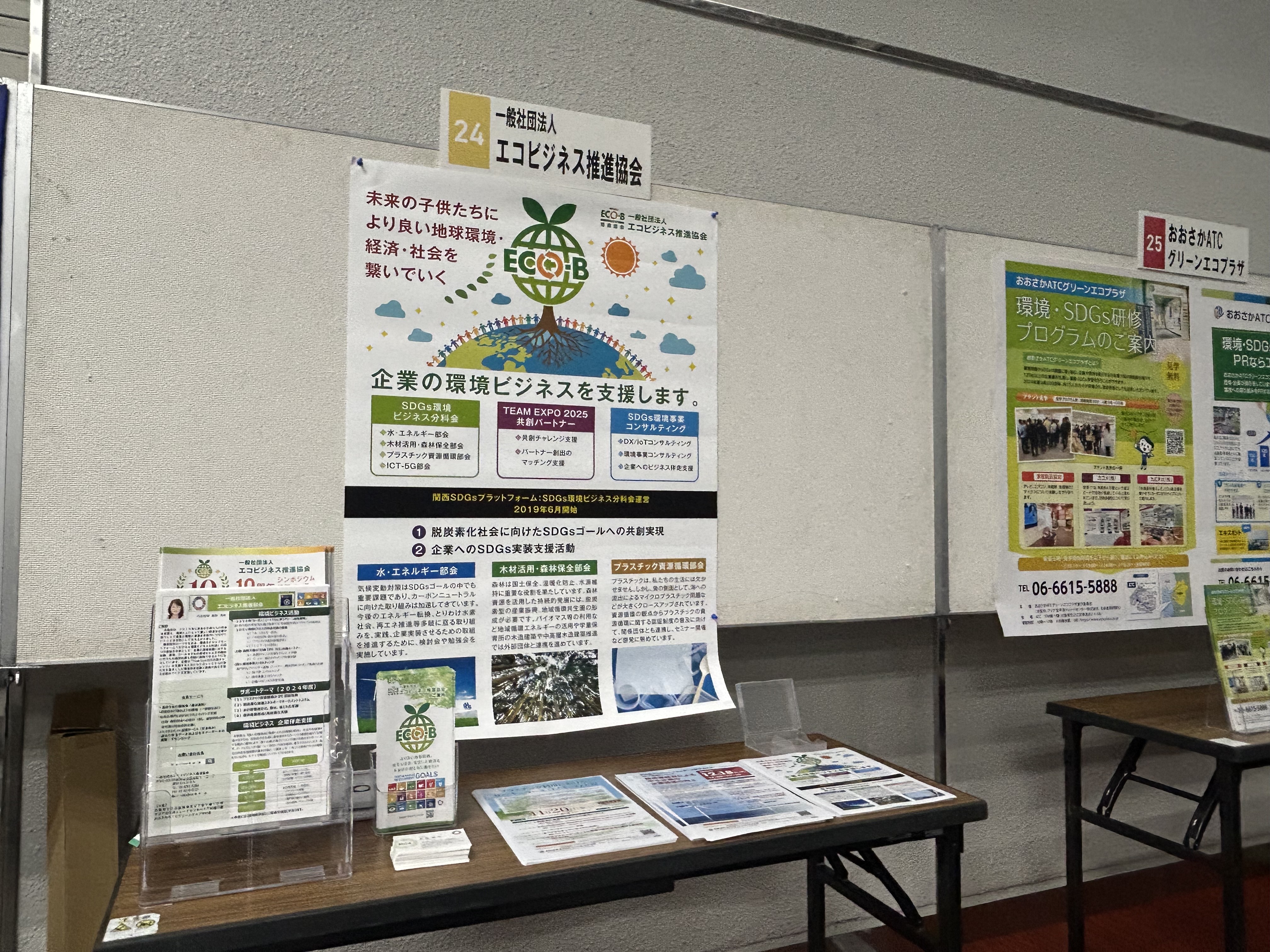 オール関西で脱炭素社会を実現できるよう、関西の事業者や団体など多様な主体が連携を図る機会創出の場として、エコビジネス推進協会もブース出展・PR会をしました。